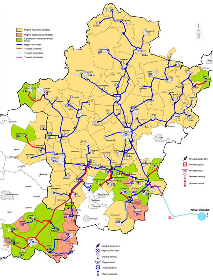 A kitermelt víz kezelésére arzén és ammónia mentesítő technológia (törésponti klórozás, flokulációs technológia) került kiépítésre Gyula és Elek városokban.